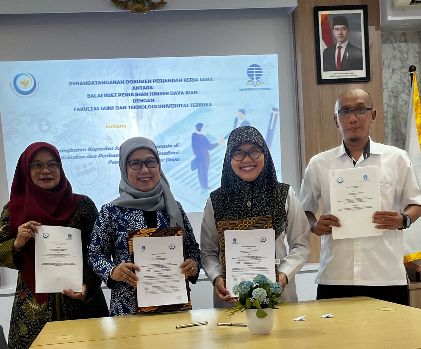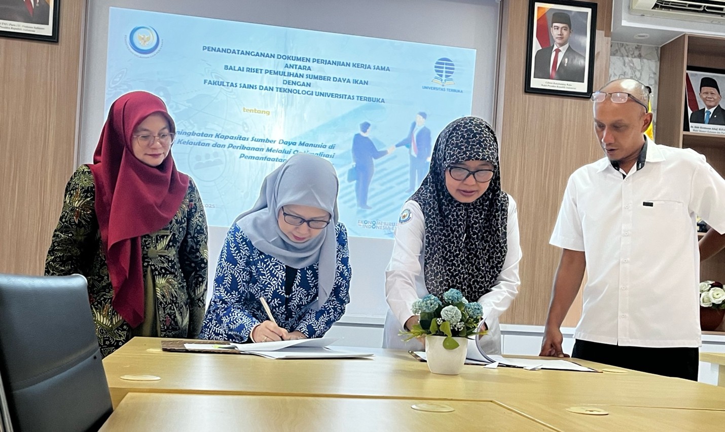 Purwakarta, 20 Januari 2025 – Balai Riset Pemulihan Sumber Daya Ikan (BRPSDI) Badan Penyuluhan dan Pengembangan Sumber Daya Manusia Kelautan dan Perikanan, Kementerian Kelautan dan Perikanan bersama Fakultas Sains dan Tekonologi melakukan penandatanganan dokumen perjanjian kerjasama. Kegiatan ini dilakukan mulai pukul 09.00 WIB sampai dengan 12.00 WIB. Kolaborasi ini memiliki tujuan untuk meningkatkan kapasitas sumber daya manusia di bidang kelautan dan perikanan melalui optimalisasi pemanfaatan sumber daya.