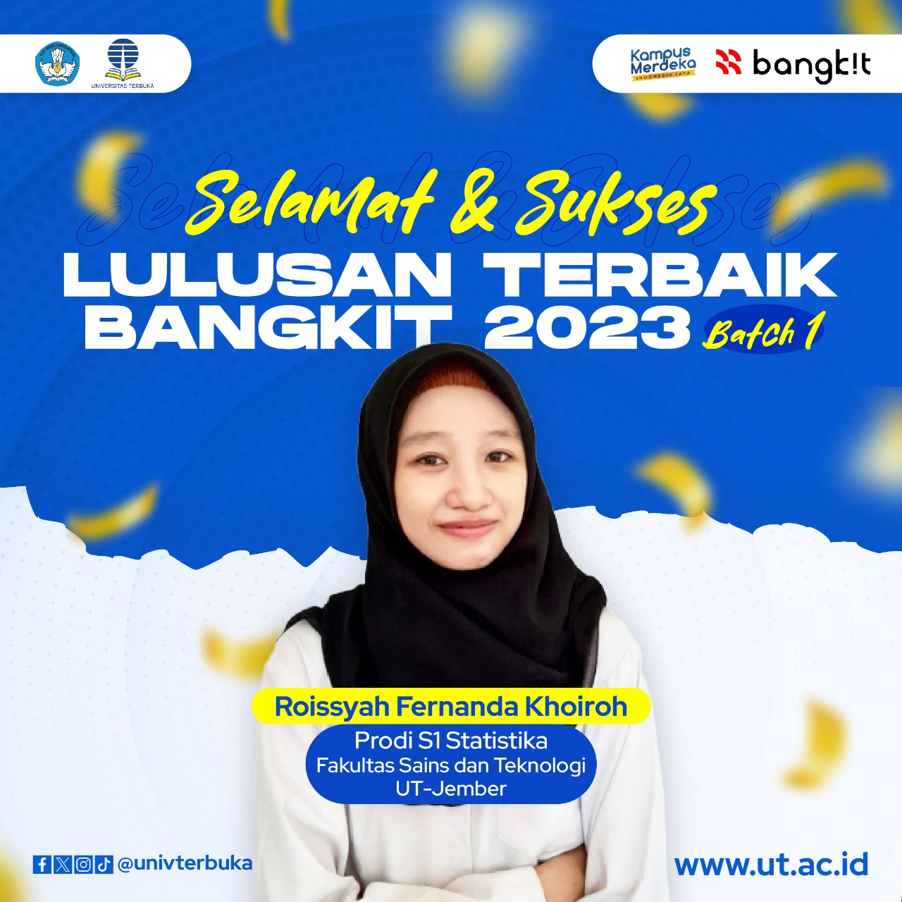 Roissyah Fernanda Khoiroh (24) atau yang akrab disapa Nanda wanita kelahiran Lumajang, Jawa Timur, merupakan lulusan terbaik Program Kampus Merdeka Bangkit By Google, GoTo, Traveloka Batch 1 dari Program Studi Statistika Fakultas Sains dan Teknologi Universitas Terbuka.