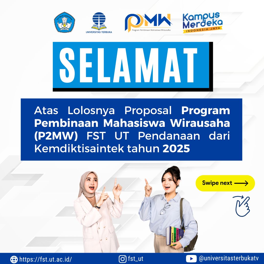 Berikut adalah daftar tim mahasiswa FST Universitas Terbuka yang berhasil lolos pendanaan P2MW 2025: