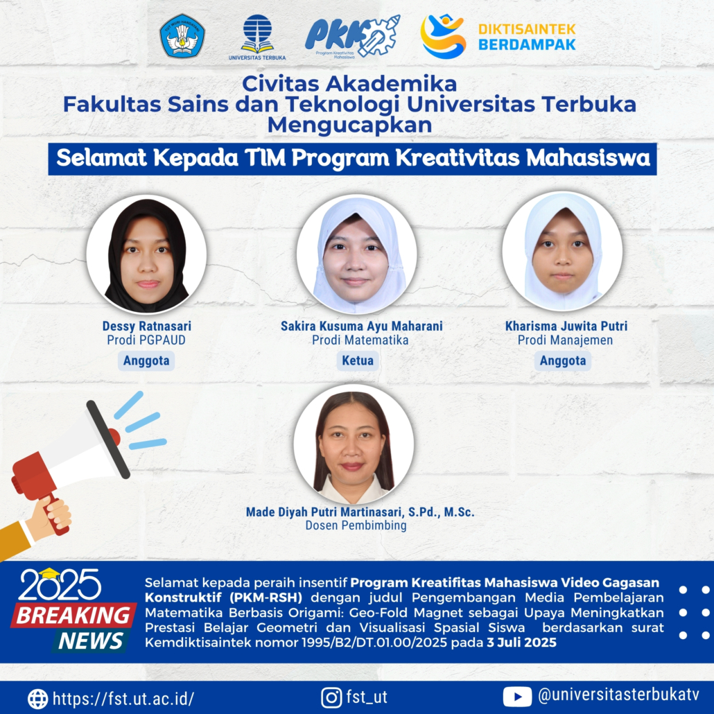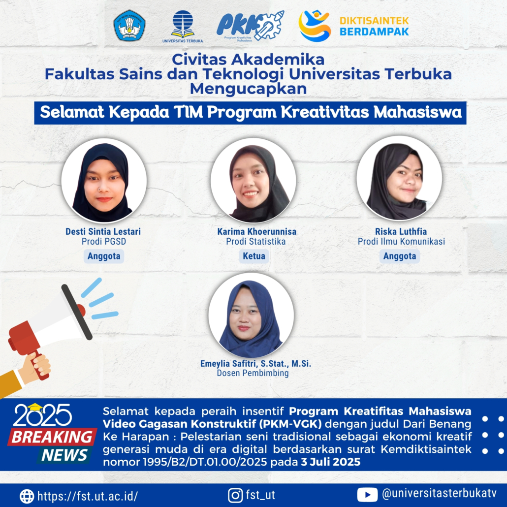 Raih Prestasi Membanggakan: Tiga Tim Mahasiswa FST Universitas Terbuka Lolos Pendanaan PKM 2025