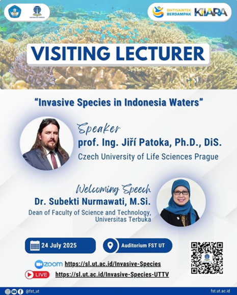 Fakultas Sains dan Teknologi, Universitas Terbuka menghadirkan kegiatan akademik internasional dalam bentuk Visiting Lecturer, yang kembali menghadirkan Prof. Ing. Jiří Patoka, Ph.D., DiS dari Czech University of Life Sciences Prague. Kegiatan ini mengangkat tema yang krusial dan sering luput dari perhatian publik yaitu Invasive Species in Indonesia Waters atau spesies invasif yang kini mengancam ekosistem perairan di Indonesia.